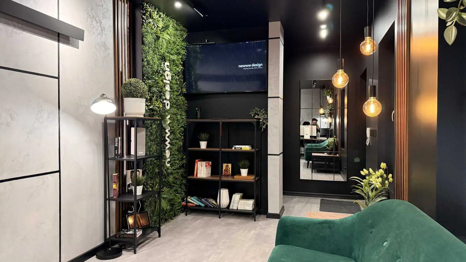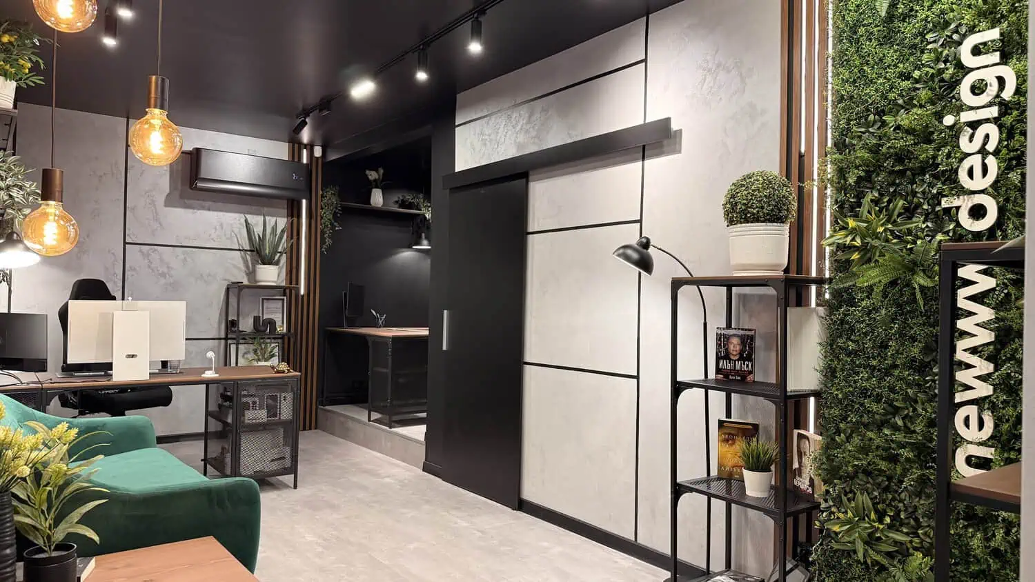 Това пространство е създадено с ясна цел – фокус, спокойствие и смислени разговори.Тук дизайнът не е декор, а инструмент. Всяка линия, текстура и светлина работят в услуга на идеите и решенията, които изграждаме за нашите клиенти.